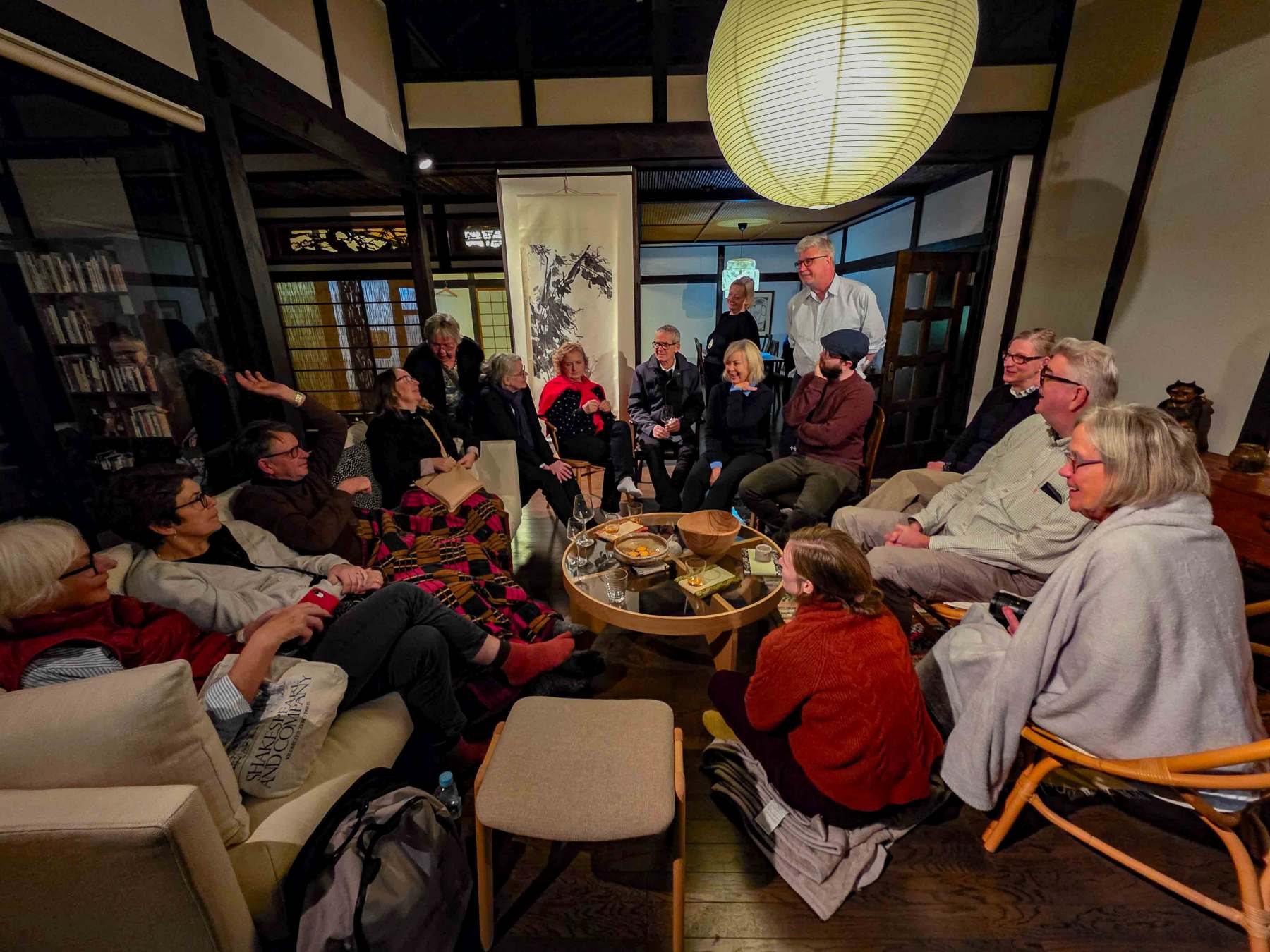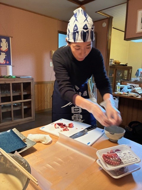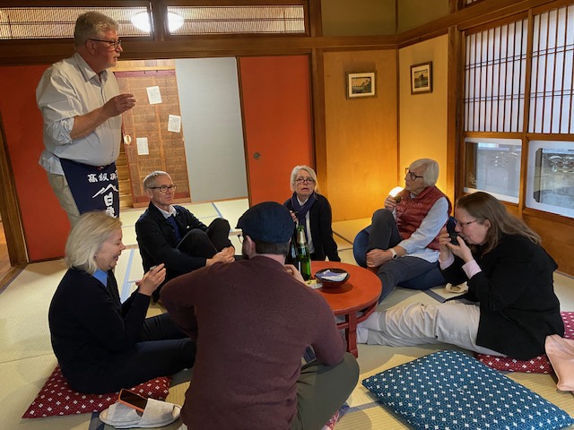 Under resan i november hade jag hjälp av tre japanska medarbetare från kontoret i Japan som hjälpte våra resenärer att göra sushirullar, bläckfiskbollarna takoyaki och en del annat smått och gott medan jag själv höll i en liten sakeprovning. Jag ser fram emot att få ta emot ännu en grupp i april och sedan igen i november. Resan i april 2026 är fulltecknad, men det finns fortsatt platser kvar till resan i november 2026. Dessutom är naturligtvis Kyoto med på många av våra övriga resor till Japan. Ena halvan fick göra en sakeprovning medan andra halvan... ...lagade mat med tre av våra medarbetare på kontoret i Kyoto. Gruppen i november hemma hos Jörgen Jörgen berättar om Gyllene paviljongen.