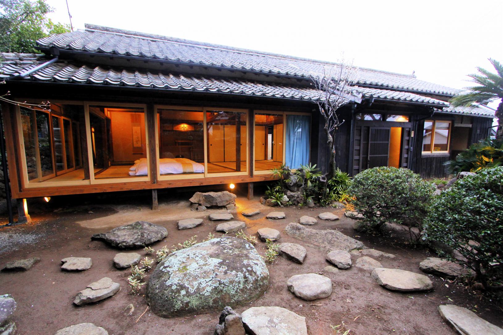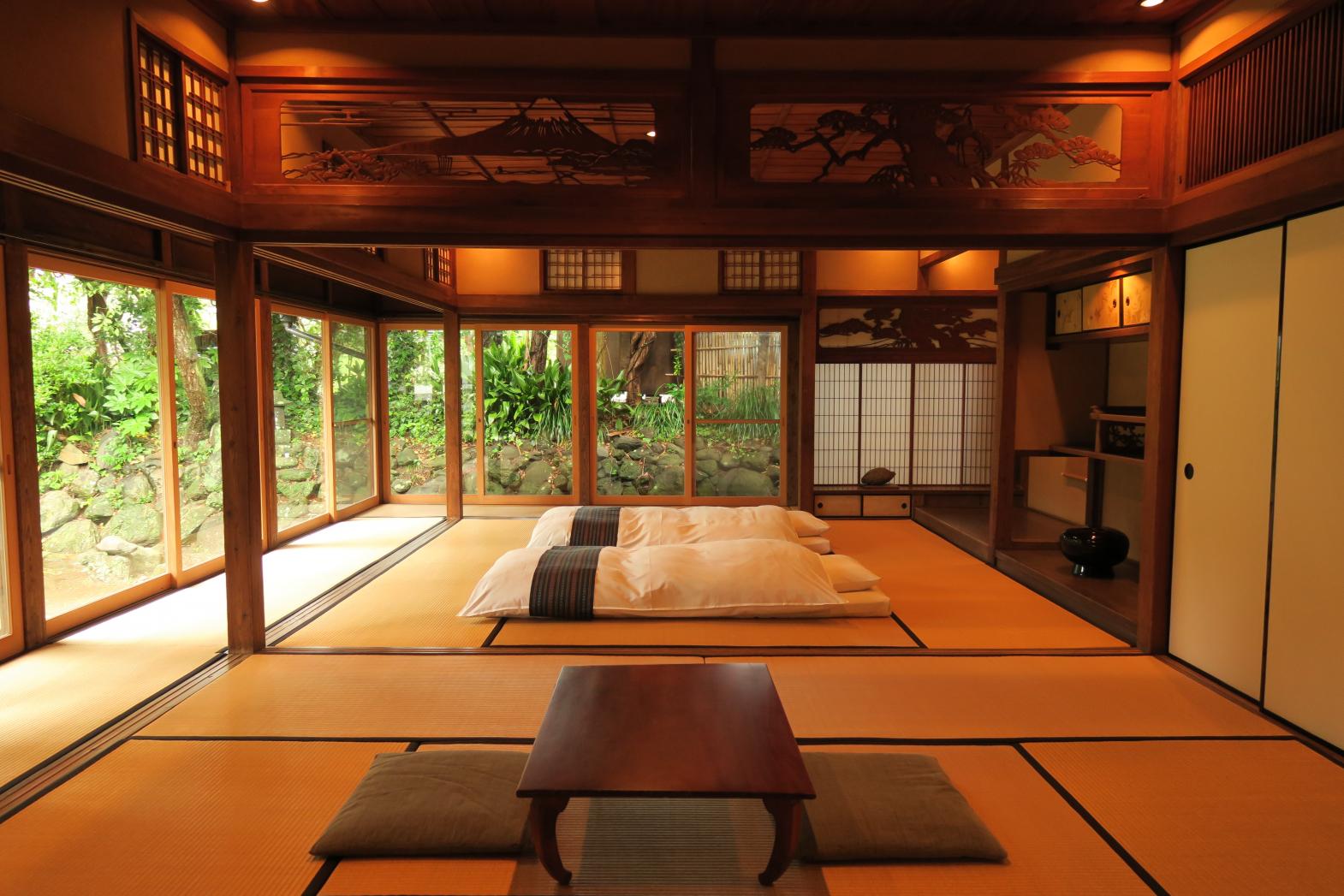 * Vi väljer ibland att bo på japanska gästgiverier/pensionat, s k ryokans. Det innebär att vi bor på ställen med japansk atmosfär - skjutdörrar, tatamimattor, madrasser på golvet och i flera fall japanska trädgårdar att se ut över från rummen samt japanska bad i korridorerna. På vissa ställen ligger dusch och toalett i korridoren. Det går ej att få enkelrum när vi bor på ön Ojika.