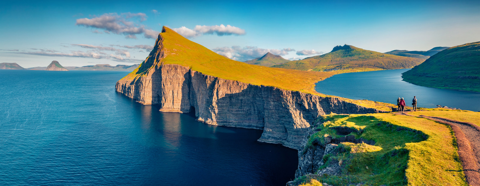 Färöarna är en alldeles unik plats med vild och magnifik natur som vi väljer att utforska mestadels till fots. Under sju dagar blir det lika många promenader och vandringar på fyra olika öar. Vi går på stigar och fritt i landskapet över intensivt gröna bergssidor med betande får, upp till dramatiska berg, förbi sjöar och längs kusten med forsande vattenfall och lodräta klippväggar. En dag åker vi båt till Vestmannaklipporna och fågelön Mykines för att på nära håll följa de färgglada lunnefåglarna.