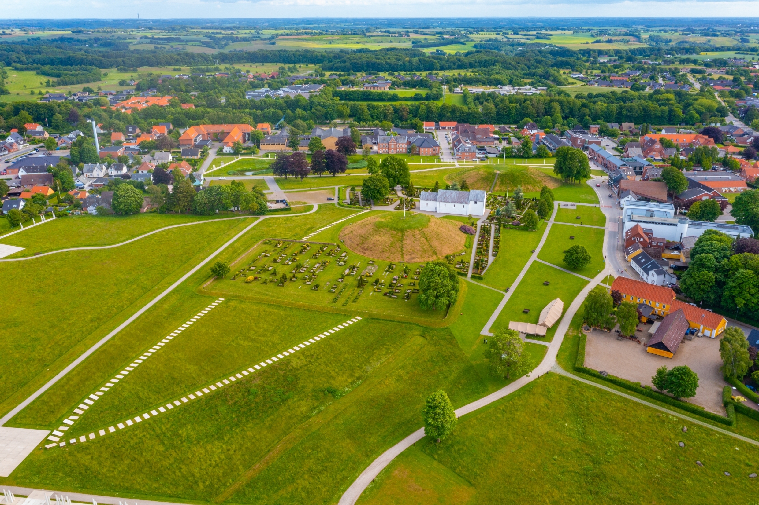 Platsen kallas dessutom för Danmarks dopattest och här finns nu ett interaktivt muséum, en del av Nationalmuseum, som berättar historien om Danmarks enande och födelse som nation. Här finns också en konstgestaltning av den kilometerlånga palissad som omgärdade området ursprungligen. Vi får en guidad tur i området och tid att på egen hand upptäcka det interaktiva muséet.
