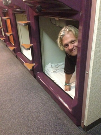 Kapslarna är rymligare än vad man kan tro, dom är ca 250 cm långa med en gardin man stänger med, ingen lucka alltså. Man kan sitta upprätt och det finns radio, TV, väckarklocka och kontakt om man behöver ladda telefonen eller kameran.